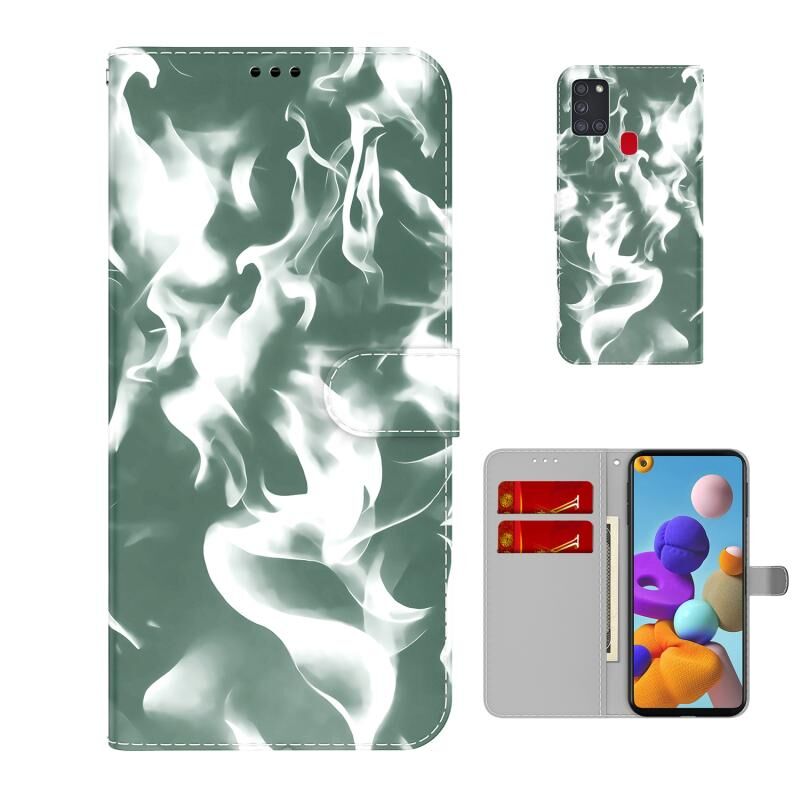 Για Samsung Galaxy A21s Cloud Fog μοτίβο οριζόντια Flip δερμάτινη θήκη με θήκη & υποδοχή για κάρτες & πορτοφόλι (σκούρο πράσινο)