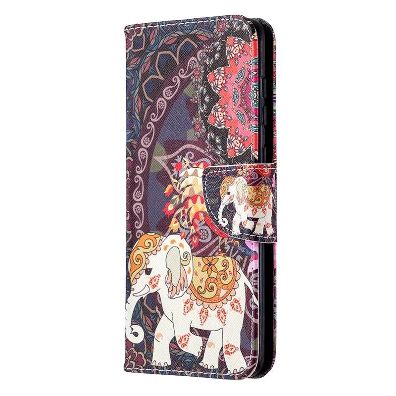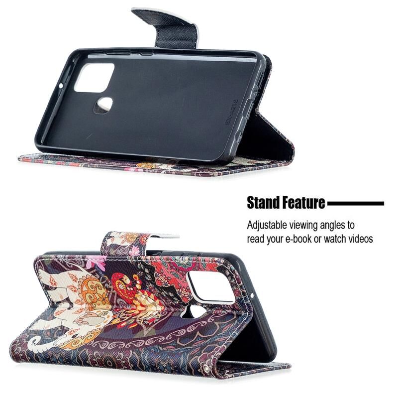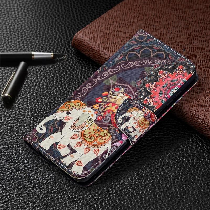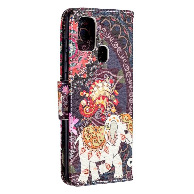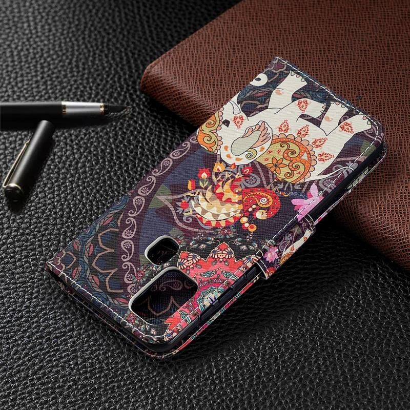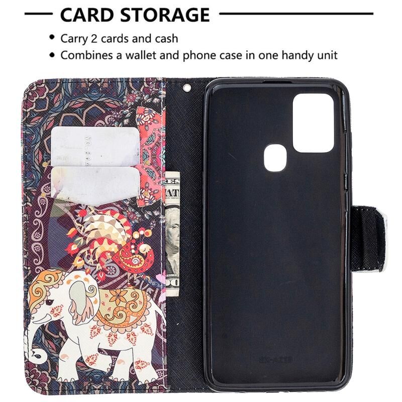 Θήκη δέρματος οριζόντιας αναδίπλωσης με σχέδια και χρώματα για Samsung Galaxy A21s με βάση στήριξης & υποδοχές καρτών & πορτοφόλι (Λουλούδι Ελέφαντας)