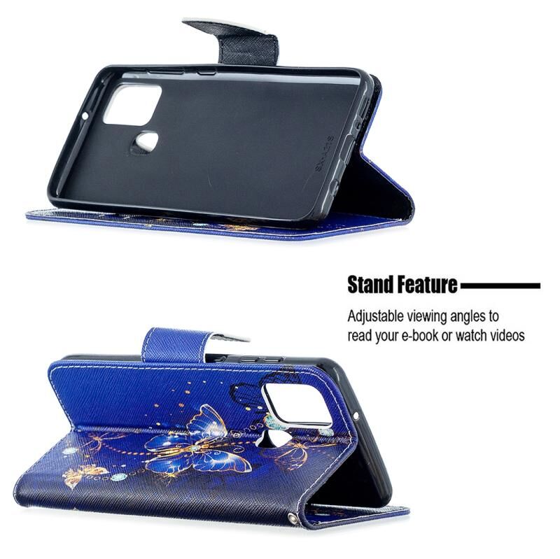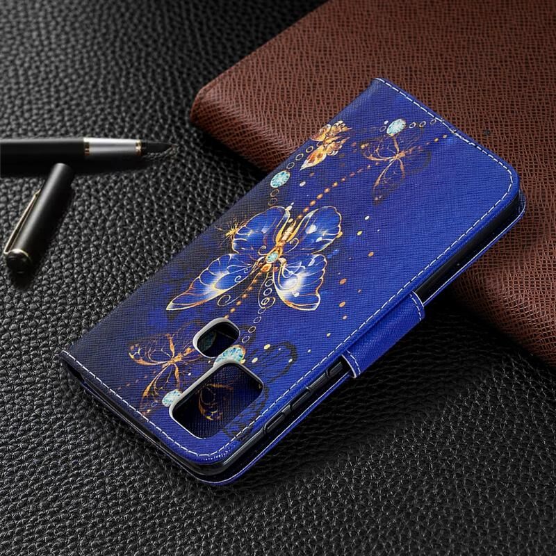Θήκη Samsung Galaxy A21s Δερμάτινη Οριζόντια με σχέδιο, βάση στήριξης & θήκες για κάρτες & πορτοφόλι (Μωβ Πεταλούδα)