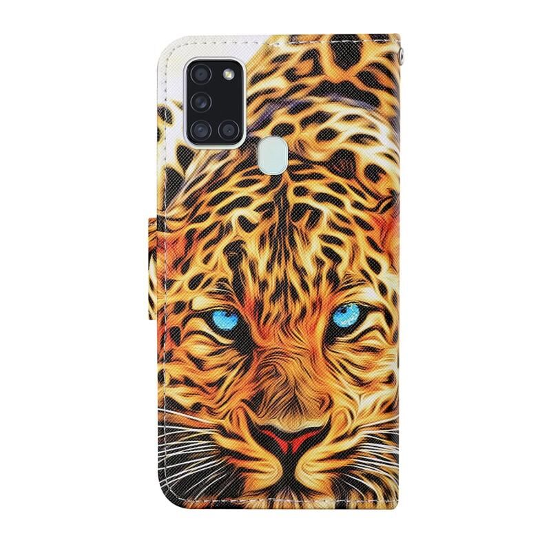 Θήκη δέρματος οριζόντιας αναδίπλωσης με σχέδιο πολύχρωμης ζωγραφικής για Samsung Galaxy A21s με βάση στήριξης & υποδοχές καρτών & πορτοφόλι & κορδόνι (Μαύρος Πλανήτης)