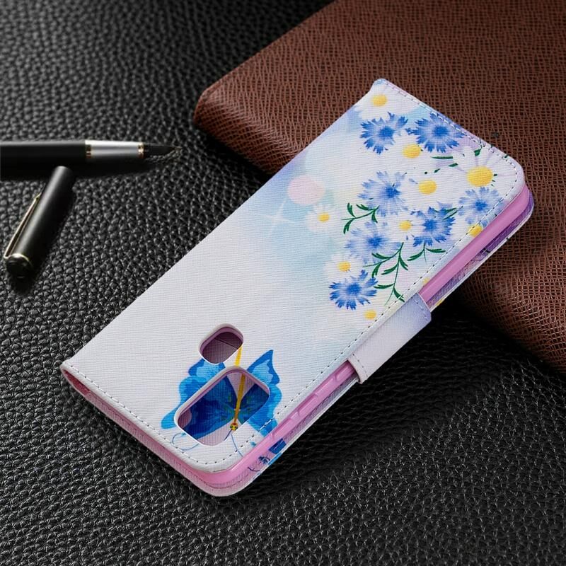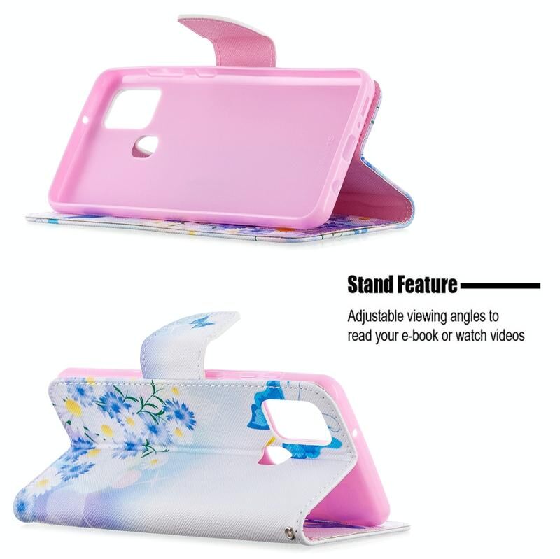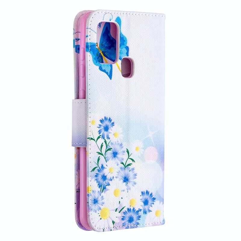 Θήκη δέρματος οριζόντιας αναδίπλωσης με σχέδιο πολύχρωμης ζωγραφικής για Samsung Galaxy A21s με βάση & υποδοχές καρτών & πορτοφόλι (Κόκκινο)