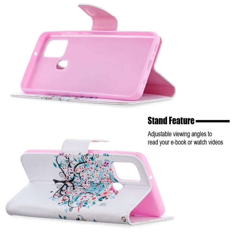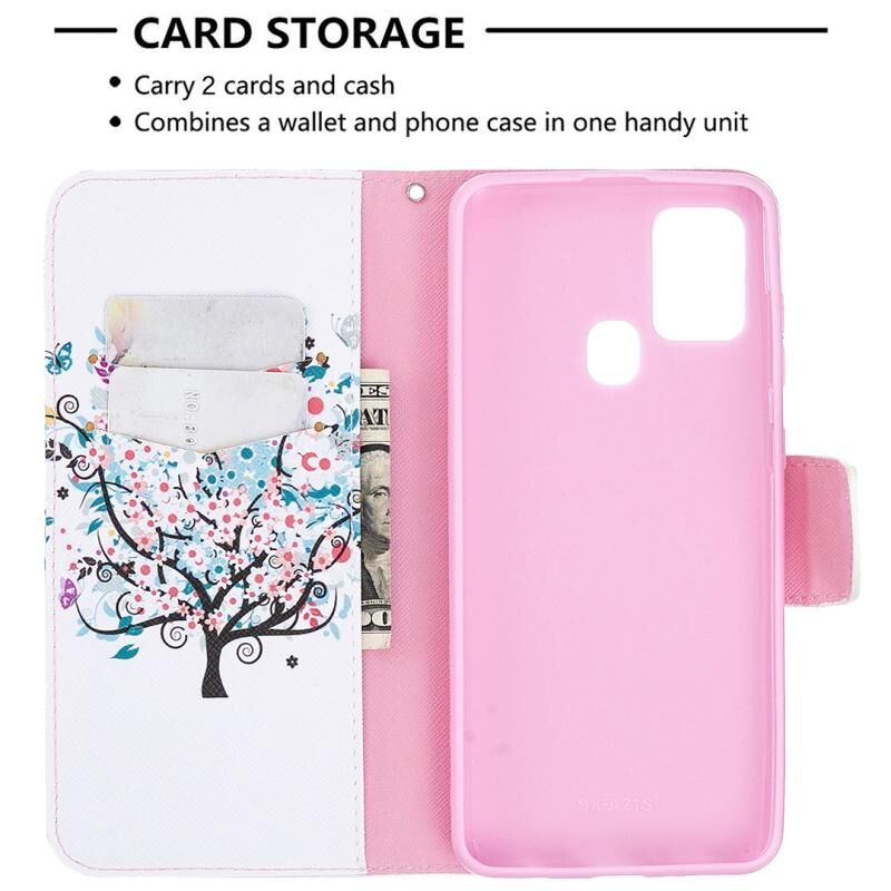 Θήκη δέρματος οριζόντιας αναδίπλωσης με σχέδιο πολύχρωμης ζωγραφικής για Samsung Galaxy A21s με βάση & υποδοχές καρτών & πορτοφόλι (Μικρό Δέντρο)
