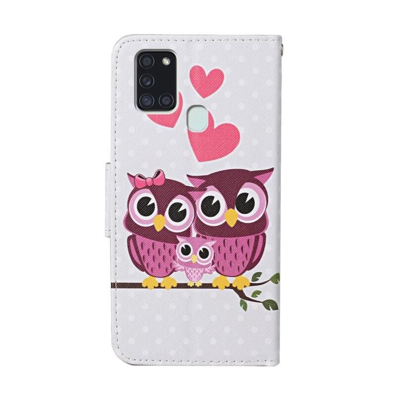 Θήκη δέρματος οριζόντιας αναδίπλωσης με σχέδιο πολύχρωμης ζωγραφικής για Samsung Galaxy A21s με βάση & υποδοχές καρτών & πορτοφόλι (Κόκκινο)