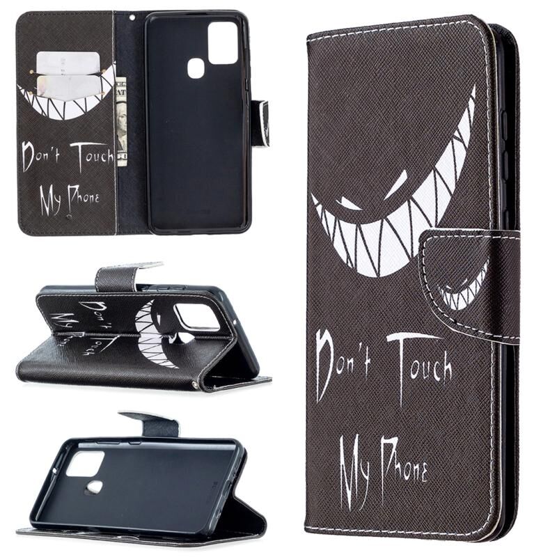 Θήκη δέρματος οριζόντιας αναδίπλωσης με σχέδιο πολύχρωμης ζωγραφικής για Samsung Galaxy A21s με βάση & υποδοχές καρτών & πορτοφόλι (Χαμόγελο)