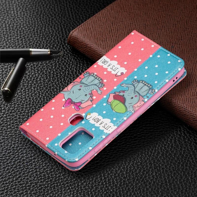 Θήκη Samsung Galaxy A21s με πολύχρωμο σχέδιο, αόρατο μαγνητικό, οριζόντιο flip από δερματίνη PU με βάση στήριξης & θήκες για κάρτες & πορτοφόλι (Κόκκινο)