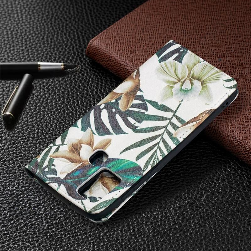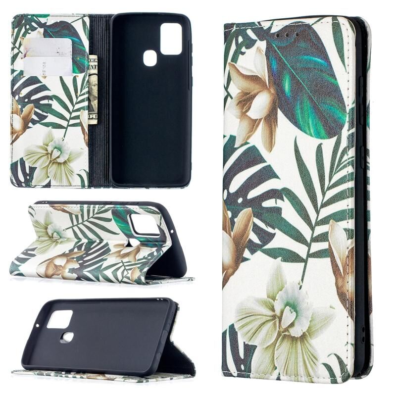 Θήκη Samsung Galaxy A21s με πολύχρωμο σχέδιο, αόρατο μαγνητικό, οριζόντιο flip από δερματίνη PU με βάση & θήκες για κάρτες & πορτοφόλι (Μπλε Φύλλο)