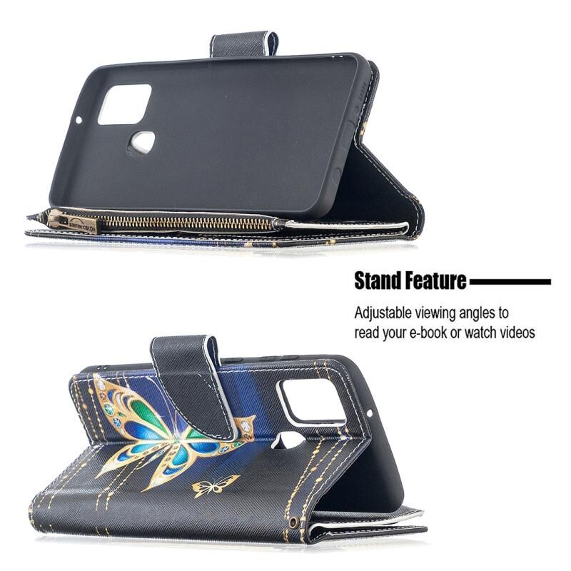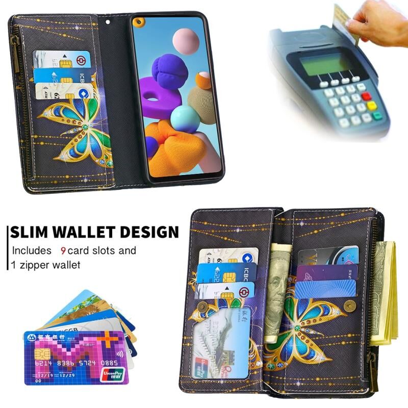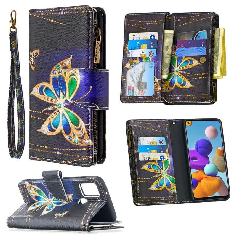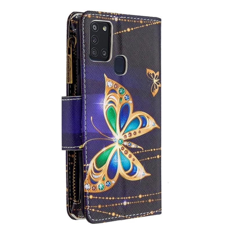 Θήκη Samsung Galaxy A21s Δερμάτινη Οριζόντια με Φερμουάρ, Πολύχρωμο Σχέδιο Ζωγραφικής, με Θήκη & Θήκες Καρτών & Πορτοφόλι (Μεγάλη Πεταλούδα)
