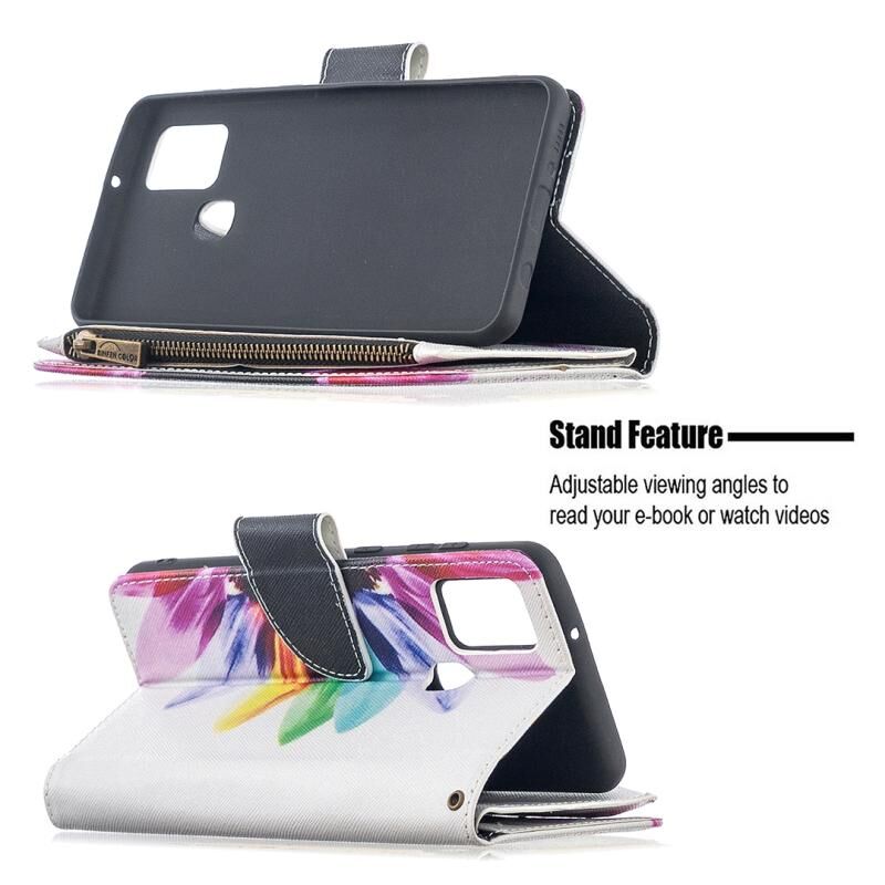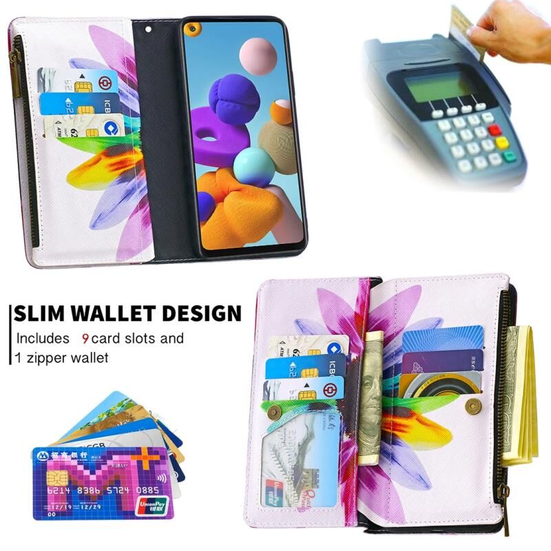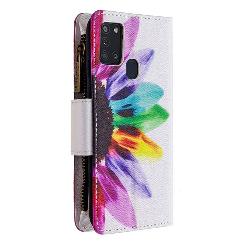Θήκη Samsung Galaxy A21s Δερμάτινη Οριζόντια με Φερμουάρ, Πολύχρωμο Σχέδιο & Θήκη, Θήκες Καρτών & Πορτοφόλι (Ηλιάνθος)