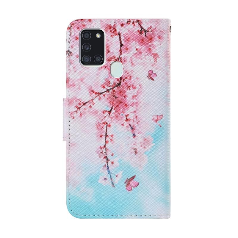 Θήκη Samsung Galaxy A21s με πολύχρωμο σχέδιο, οριζόντια αναδιπλούμενη από δερματίνη PU με βάση στήριξης, θήκες για κάρτες, πορτοφόλι & λουρί (Κόκκινο)