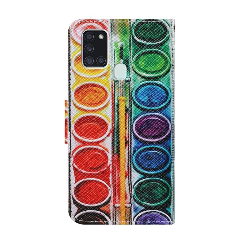 Θήκη Samsung Galaxy A21s με πολύχρωμο σχέδιο, οριζόντια αναδιπλούμενη από δερματίνη PU με βάση στήριξης, θήκες για κάρτες, πορτοφόλι & λουρί (Κόκκινο)