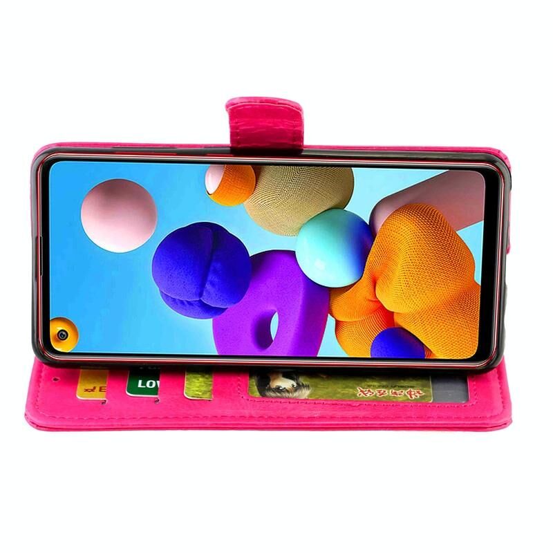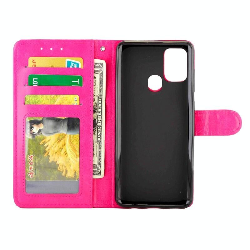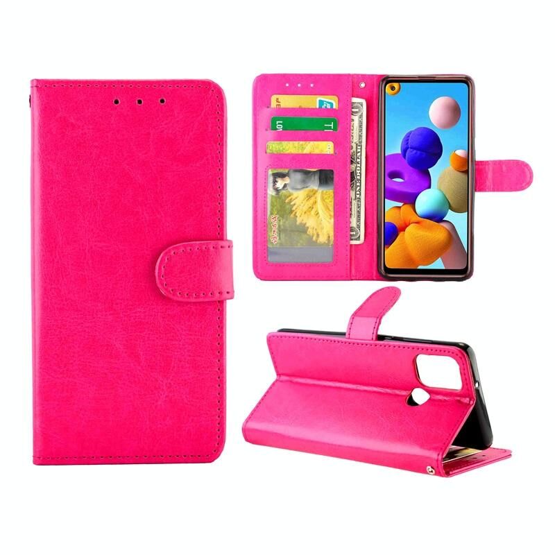 Για Samsung Galaxy A21S Crazy Horse Υφή δέρμα οριζόντια Flip προστατευτική θήκη με υποδοχές για κάρτες & θήκες & πορτοφόλι & κορνίζα φωτογραφιών (ματζέντα)