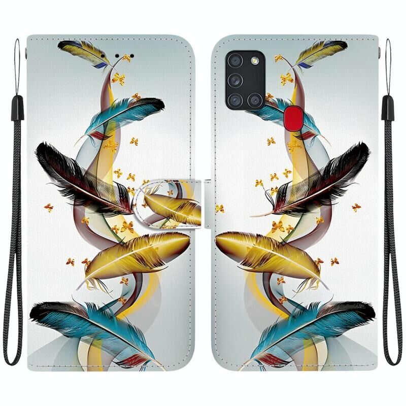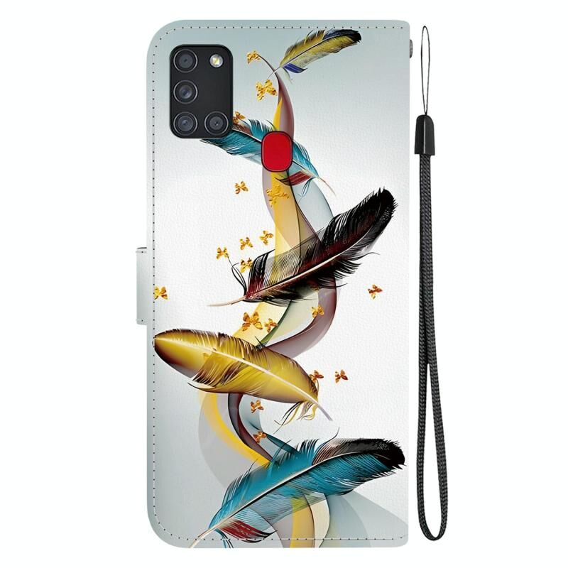 Θήκη κινητού Samsung Galaxy A21s με κρυσταλλική υφή, πολύχρωμο σχέδιο από δέρμα (Χρυσά φτερά πεταλούδας)