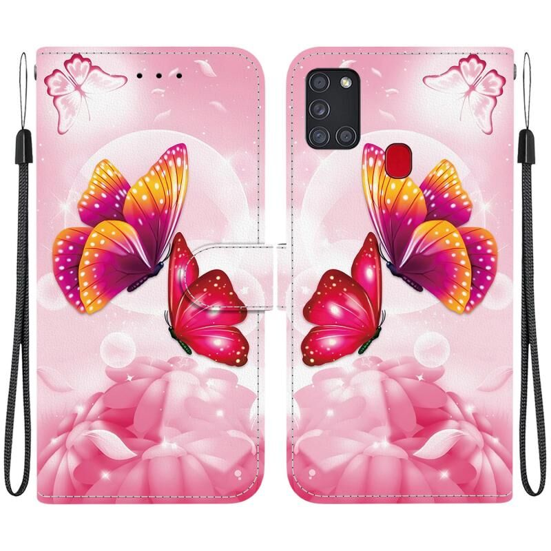 Θήκη κινητού Samsung Galaxy A21s με κρυσταλλική υφή, πολύχρωμο σχέδιο από δέρμα (Χρυσά φτερά πεταλούδας)
