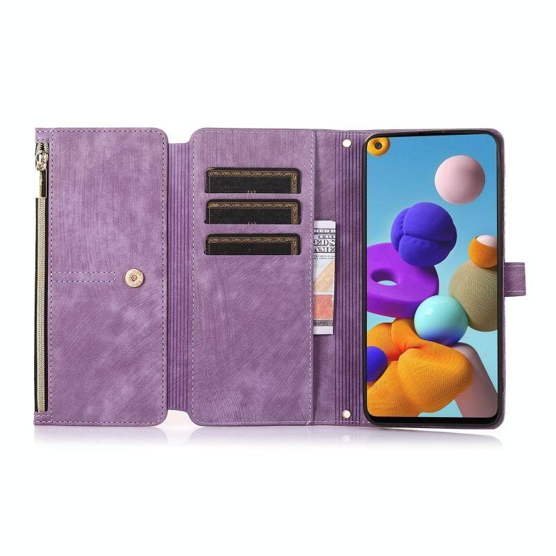 Για Samsung Galaxy A21s Dream 9-κάρτα πορτοφόλι φερμουάρ τσάντα δερμάτινη θήκη τηλεφώνου (μωβ)