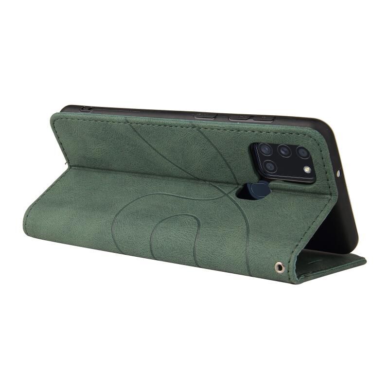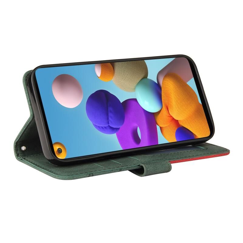 Για Samsung Galaxy A21s Διπλό χρώμα Splicing οριζόντια Flip PU δέρμα υπόθεση με θήκη & υποδοχές για κάρτες & πορτοφόλι (πράσινο)