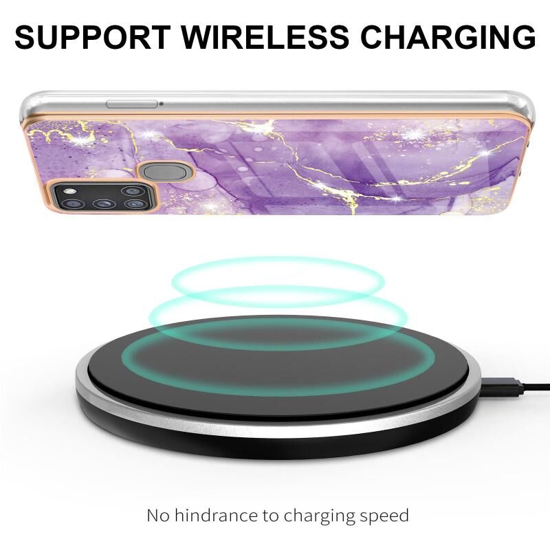 Θήκη για Samsung Galaxy A21s με Επικάλυψη Ηλεκτρολυτικής Μαρμάρου, Διπλής Όψης IMD TPU, Αντικραδασμική (Μωβ 001)