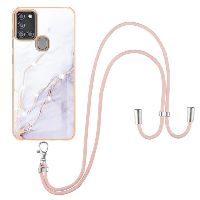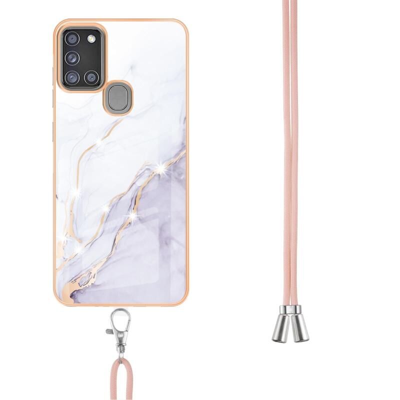Θήκη για Samsung Galaxy A21s με Γαλβανισμό, Μοτίβο Μαρμάρου IMD, Αντικραδασμική από TPU με Λουρί Λαιμού (Μωβ 002)