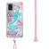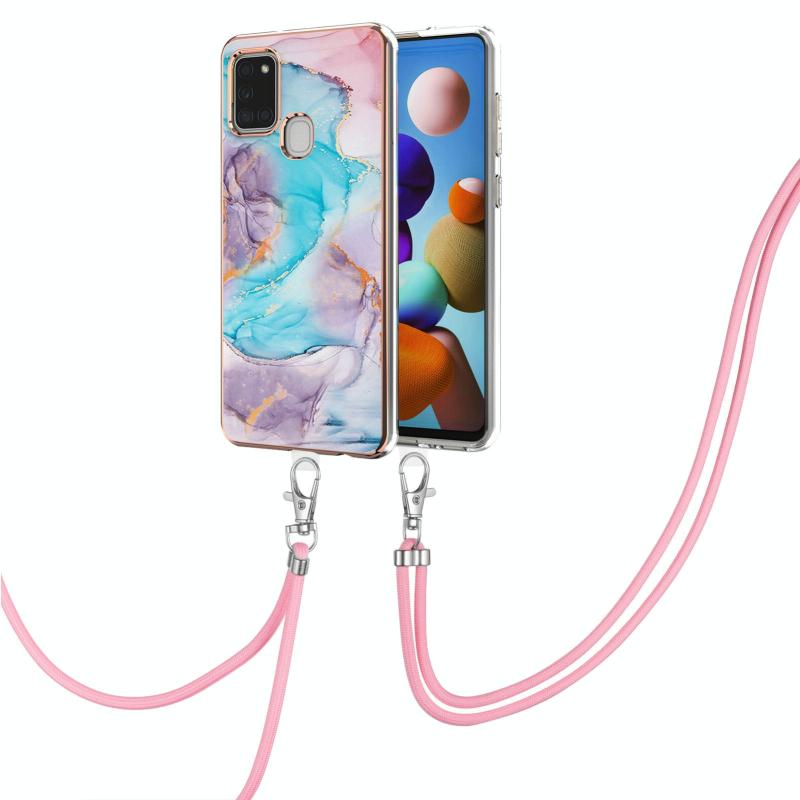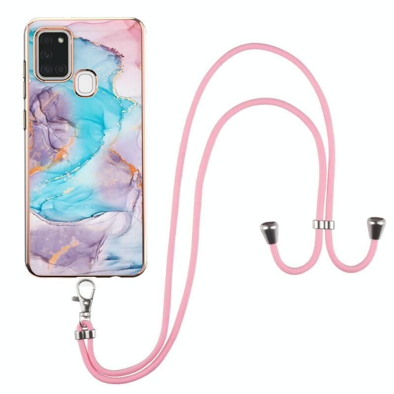 For Samsung Galaxy A21s Electroplating Pattern IMD TPU Shockproof Case with Neck Lanyard(Milky Way White Marble)