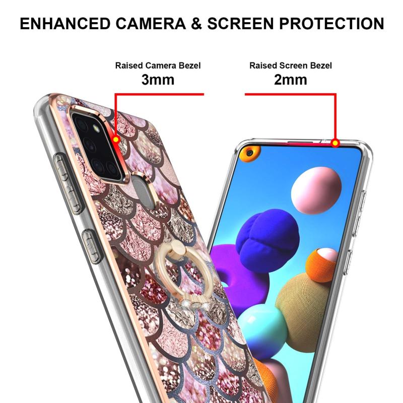 Θήκη για Samsung Galaxy A21s με Γαλβανισμένο Σχέδιο IMD TPU Αντικραδασμική με Δαχτυλίδι Στήριξης από Κρύσταλλα (Λευκό Μάρμαρο Γαλαξία)