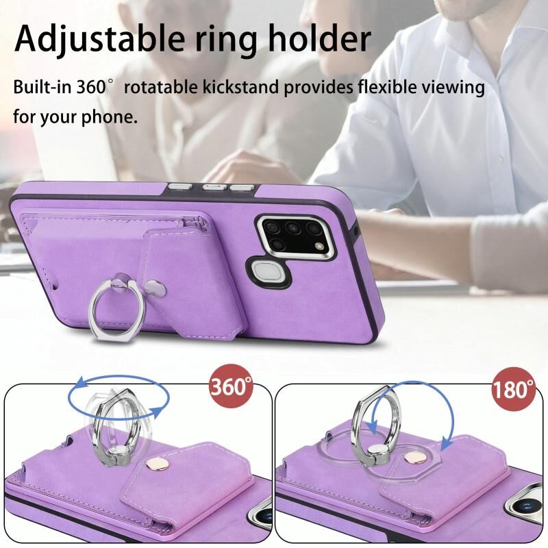 Για Samsung Galaxy A21S Ηλεκτρολυτική επιμετάλλωση δέρμα-feel δέρμα δαχτυλίδι κάρτα πορτοφόλι υπόθεση τηλεφώνου (μωβ)