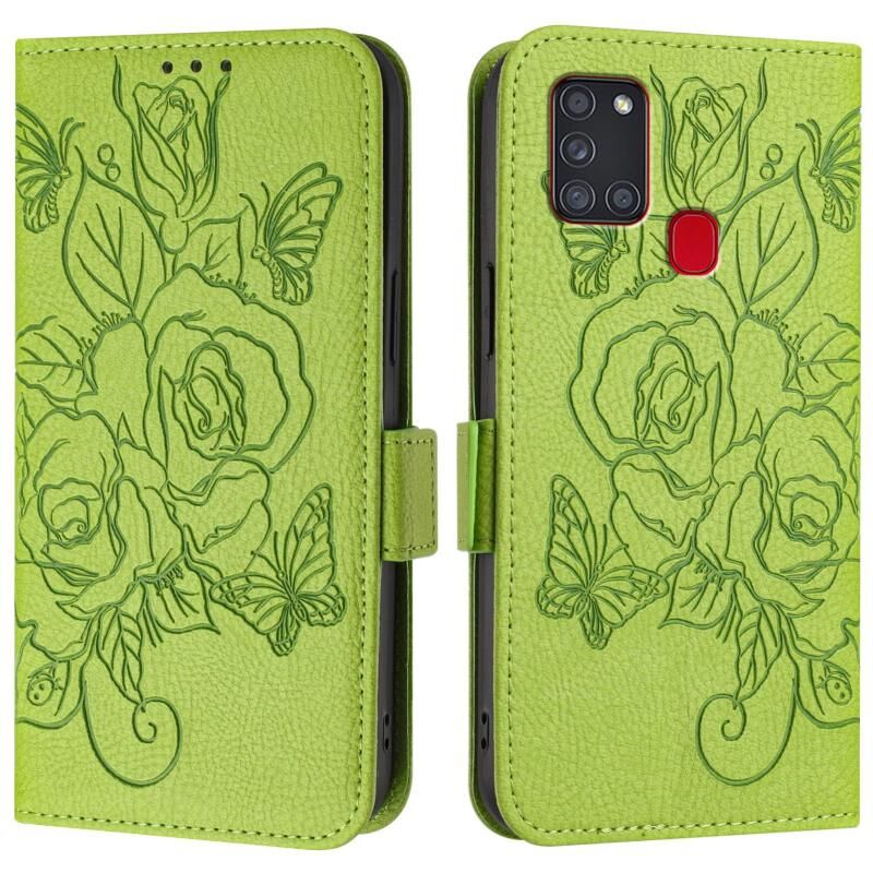 Για Samsung Galaxy A21s ανάγλυφο Rose RFID Anti-theft δερμάτινη θήκη τηλεφώνου (Πράσινο)