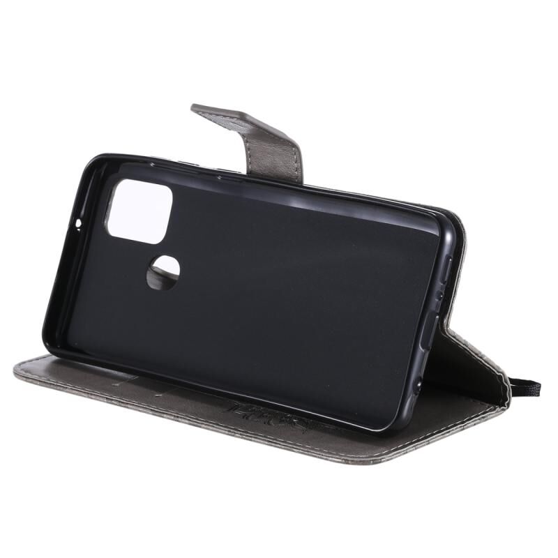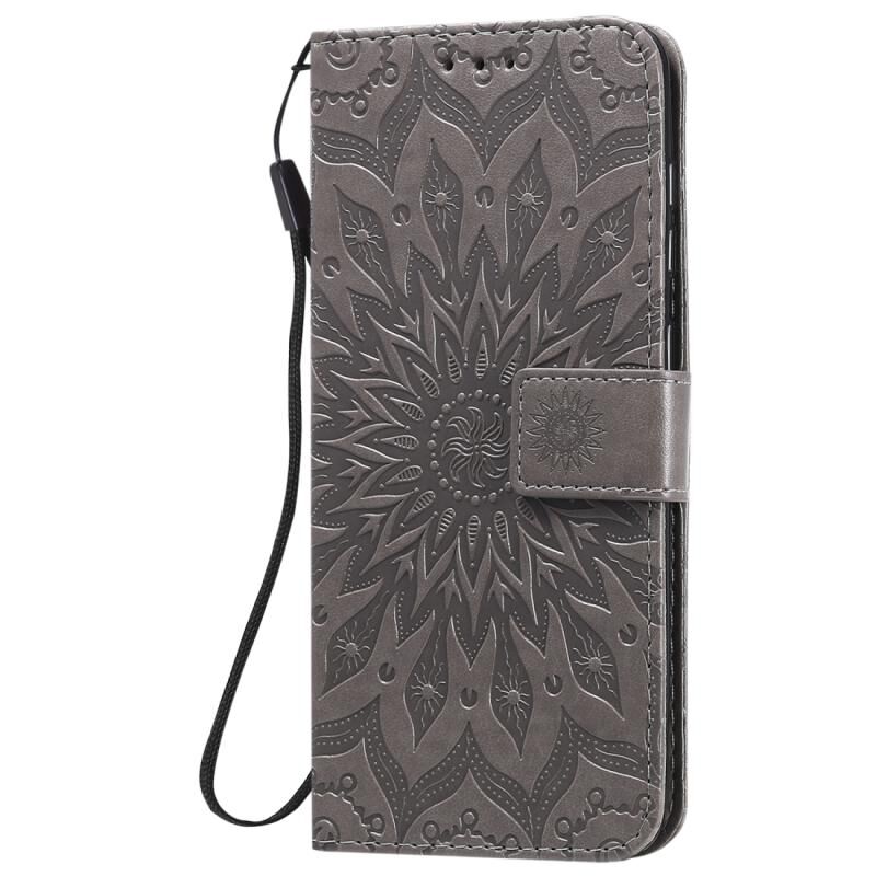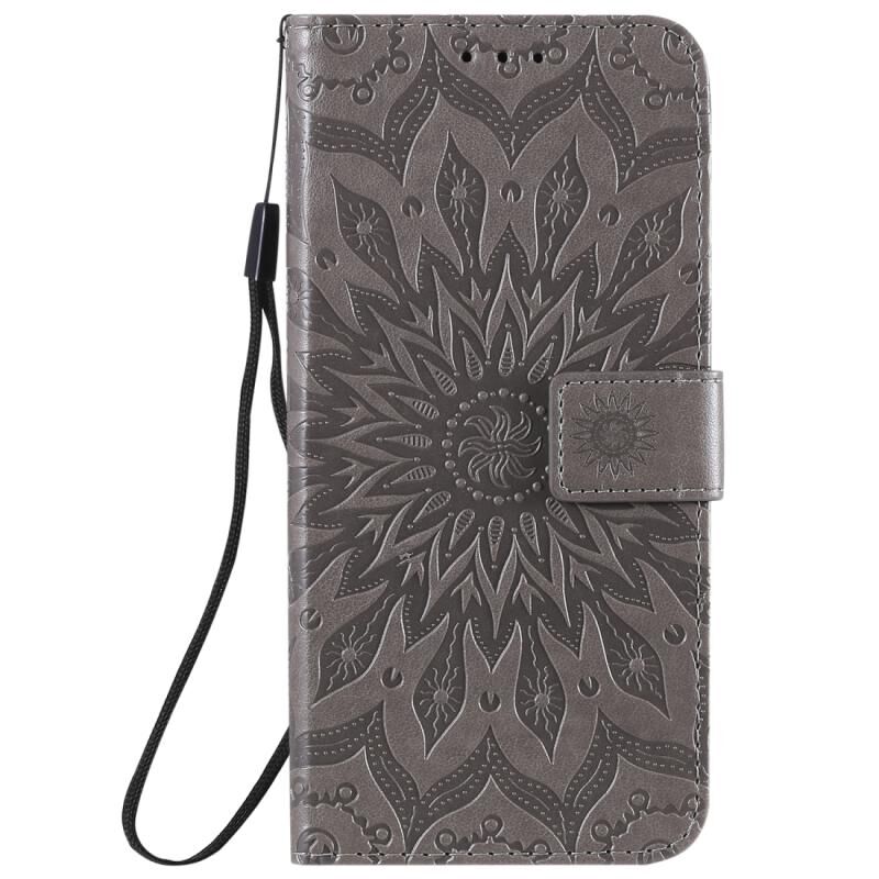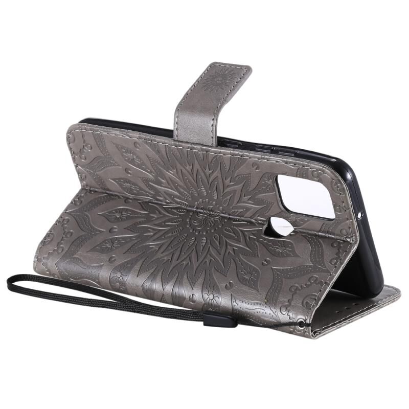 Για Samsung Galaxy A21s Ανάγλυφο ηλιοτρόπιο μοτίβο οριζόντια Flip PU δέρμα υπόθεση με θήκη & υποδοχές για κάρτες & πορτοφόλι & κορδόνι (γκρι)