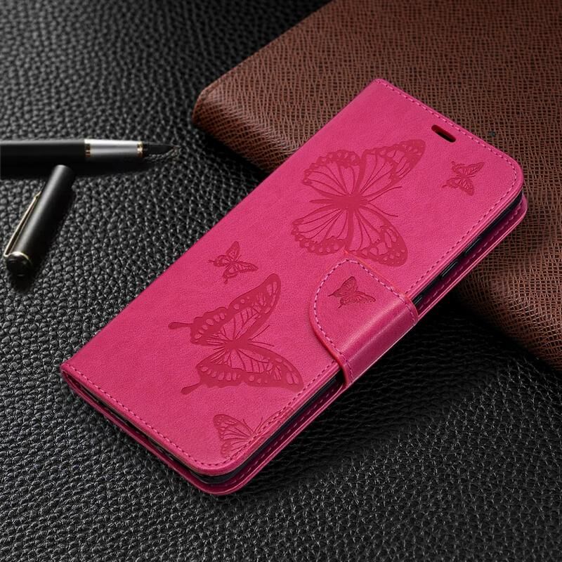 Θήκη Samsung Galaxy A21s με ανάγλυφο σχέδιο δύο πεταλούδων, οριζόντια, από δερματίνη PU με βάση στήριξης, θήκη για κάρτες, πορτοφόλι & λουρί (Πράσινο)