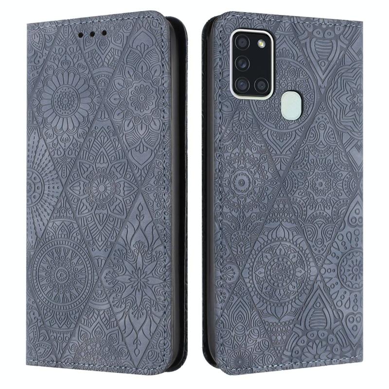Θήκη τηλεφώνου Samsung Galaxy A21s από δέρμα με έθνικ ανάγλυφο και απορρόφηση (Γκρι)