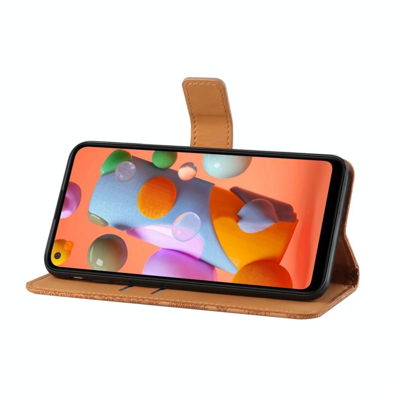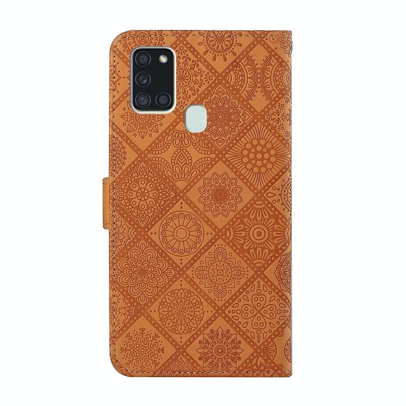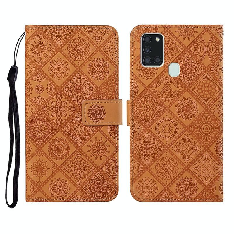 For Samsung Galaxy A21s Ethnic Style Embossed Pattern Horizontal Flip Leather Case with Holder & Card Slots & Wallet & Lanyard(Brown)
