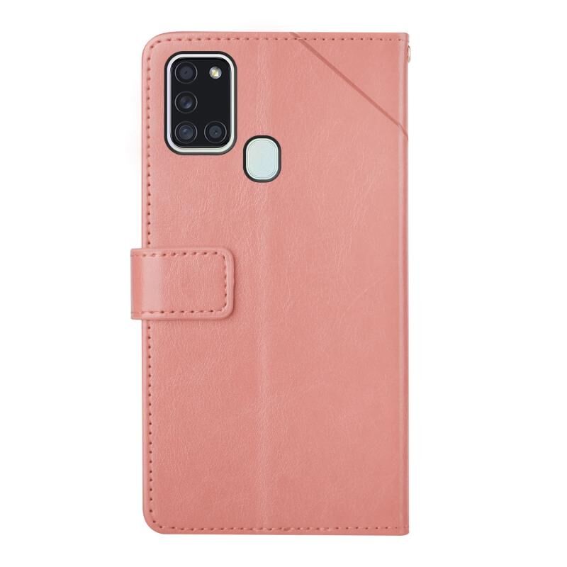 Για Samsung Galaxy A21s EU έκδοση Y ραφή οριζόντια Flip δερμάτινη θήκη με θήκη & υποδοχές για κάρτες & πορτοφόλι & κορνίζα φωτογραφιών (Rose Gold)
