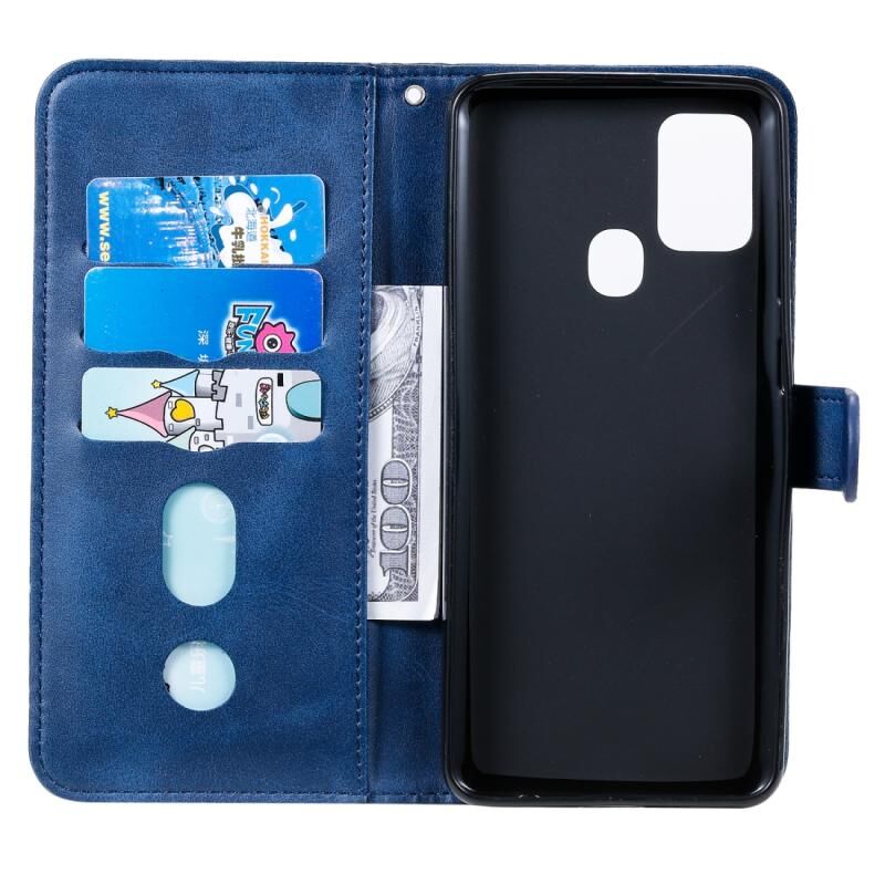Για Samsung Galaxy A21s Μόδα μοσχάρι υφή φερμουάρ οριζόντια Flip δερμάτινη θήκη με θήκη & υποδοχές για κάρτες & πορτοφόλι (μπλε)