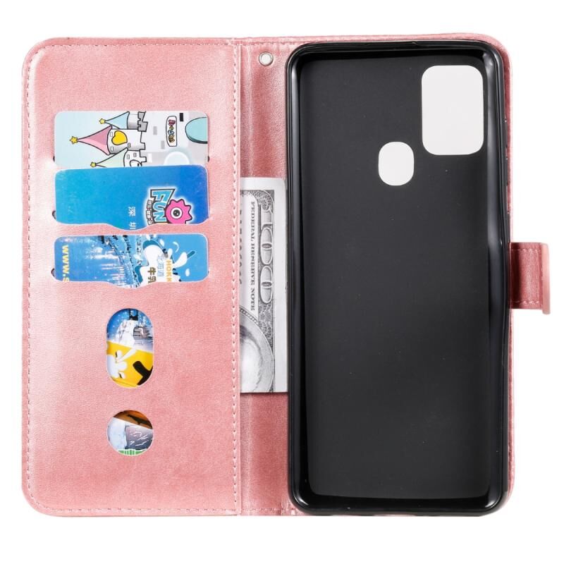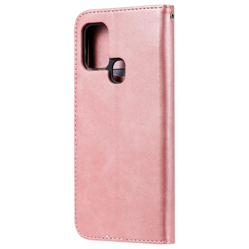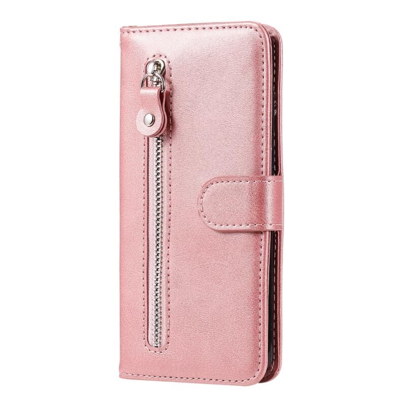 Για Samsung Galaxy A21s Μόδα μοσχάρι υφή φερμουάρ οριζόντια Flip δερμάτινη θήκη με θήκη & υποδοχές για κάρτες & πορτοφόλι (Rose Gold)