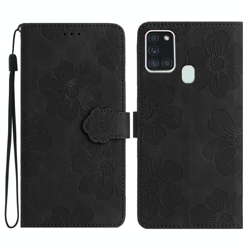Για Samsung Galaxy A21s λουλούδι ανάγλυφο μοτίβο δερμάτινη θήκη τηλεφώνου (μαύρο)
