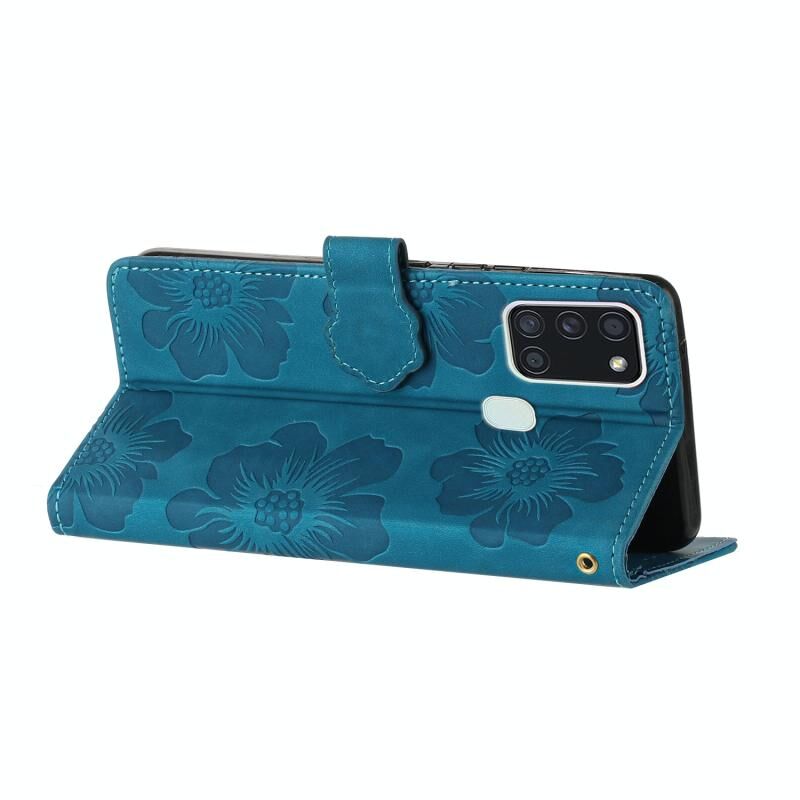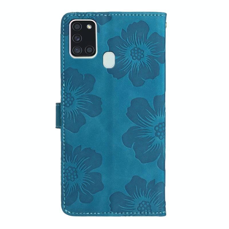 Για Samsung Galaxy A21s λουλούδι ανάγλυφο μοτίβο δερμάτινη θήκη τηλεφώνου (μπλε)
