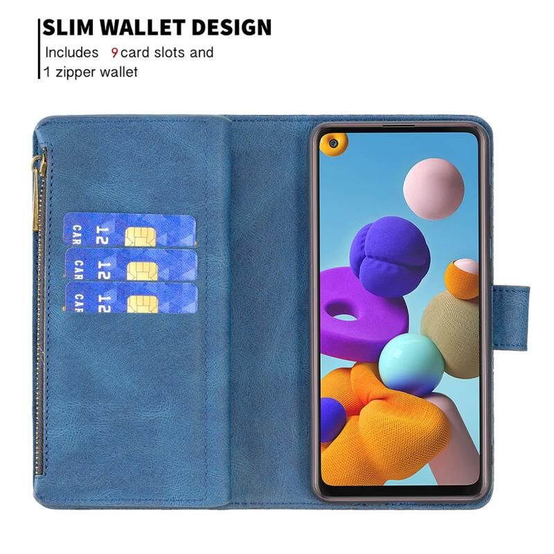 Για Samsung Galaxy A21s Flying πεταλούδα ανάγλυφο μοτίβο φερμουάρ οριζόντια Flip δερμάτινη θήκη με κάτοχο & υποδοχές για κάρτες & πορτοφόλι (μπλε)