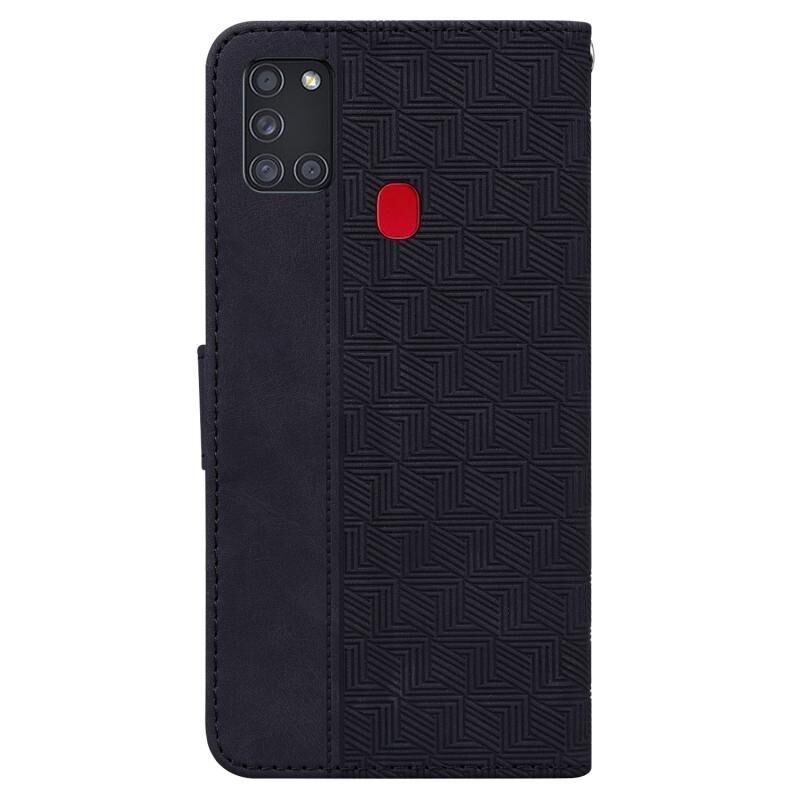 Για Samsung Galaxy A21s Γεωμετρική ανάγλυφη δερμάτινη θήκη τηλεφώνου (Μαύρο)