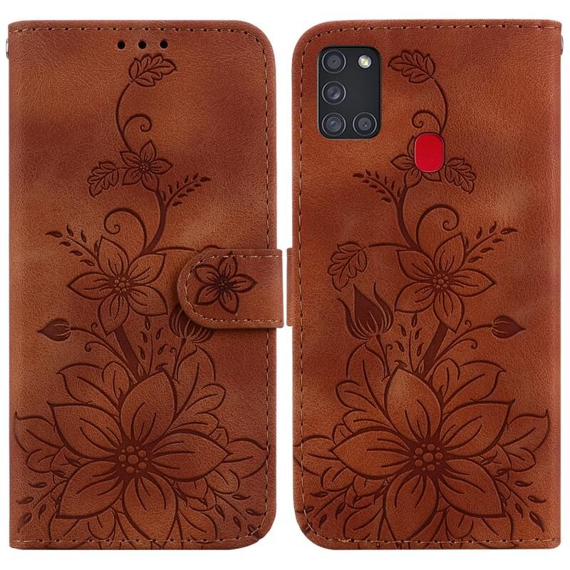 Θήκη τηλεφώνου Samsung Galaxy A21s Lily Embossed Leather (Πράσινη)