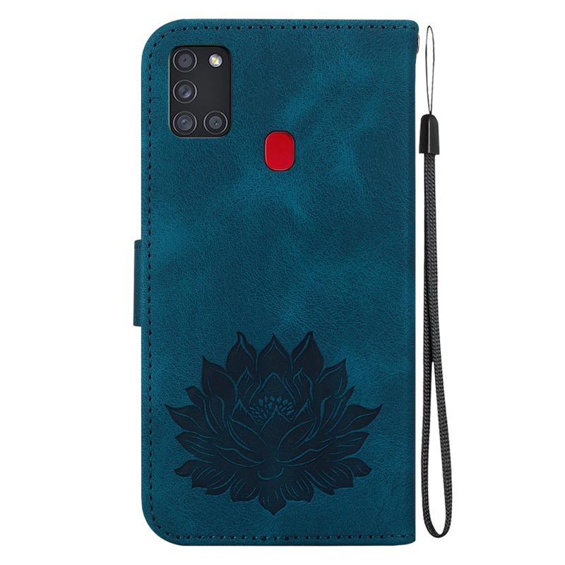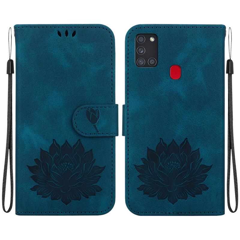 For Samsung Galaxy A21s Lotus Embossed Leather Phone Case(Dark Blue)