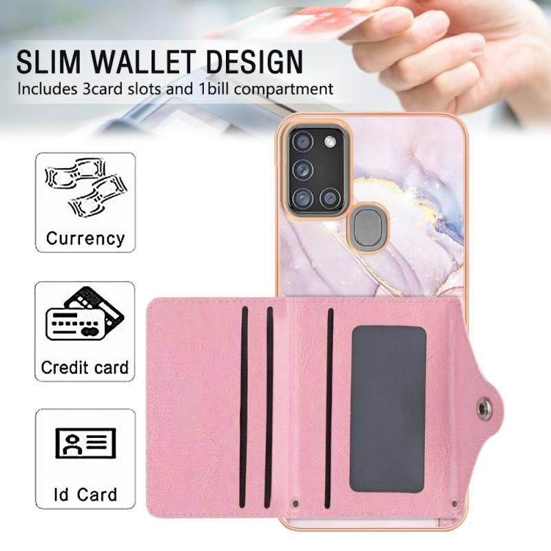 Θήκη κινητού τηλεφώνου Samsung Galaxy A21s με σχέδιο μάρμαρου IMD και θήκη κάρτας (Ροζ χρυσός)