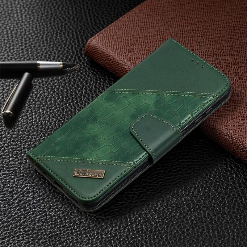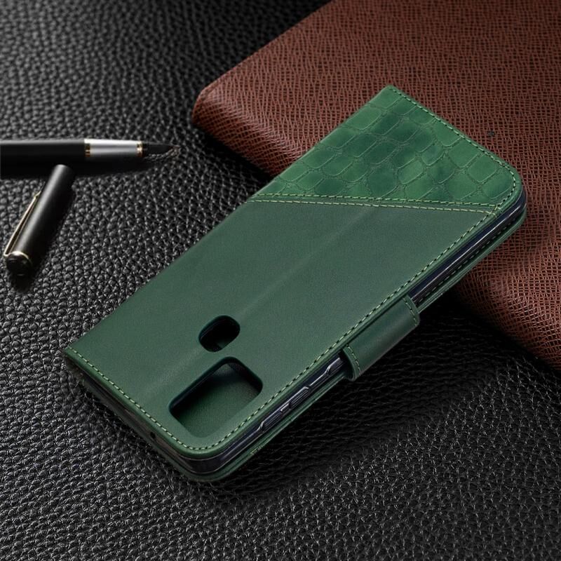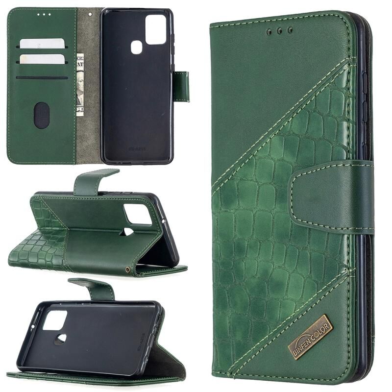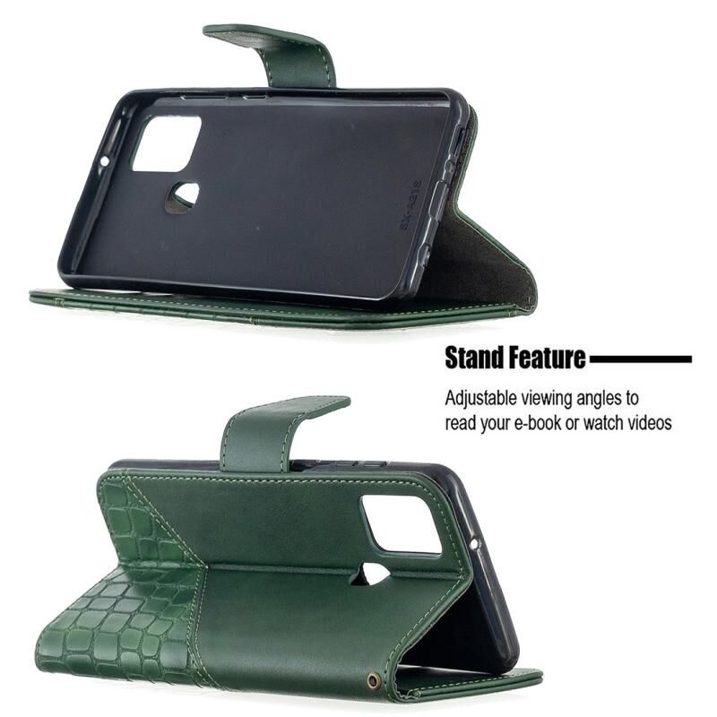 Θήκη Samsung Galaxy A21s Οριζόντια Δερμάτινη PU με Υφή Κροκόδειλου, σε Αντίστοιχο Χρώμα, με Πορτοφόλι, Στήριξη & Θήκες Καρτών (πράσινο)