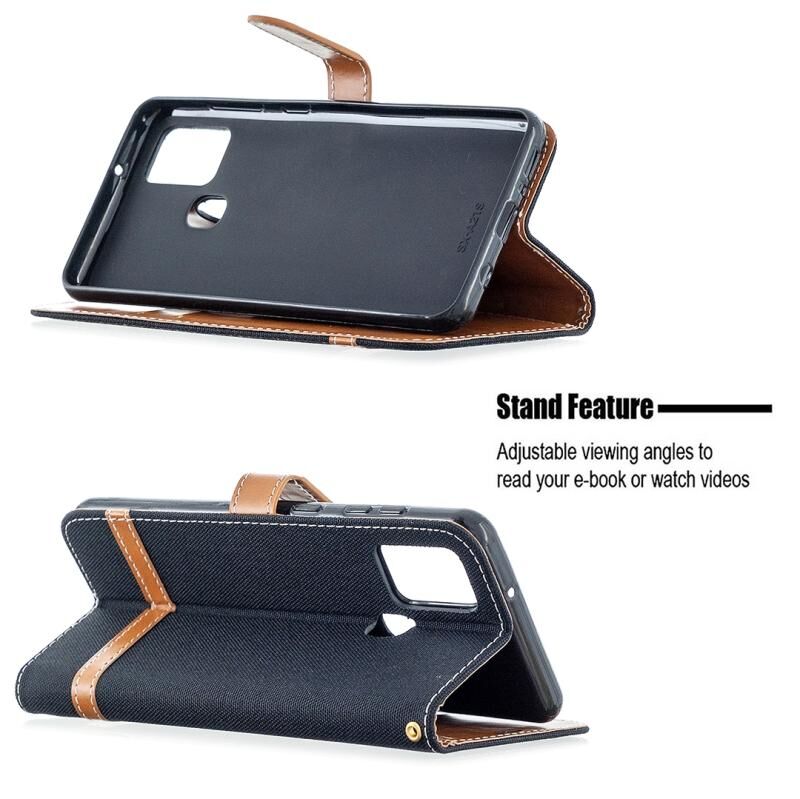 Θήκη Samsung Galaxy A21s, Οριζόντια, Δερμάτινη PU με Υφή Denim, με Θήκη, Θήκες Καρτών, Πορτοφόλι & Λουρί (Μαύρο)