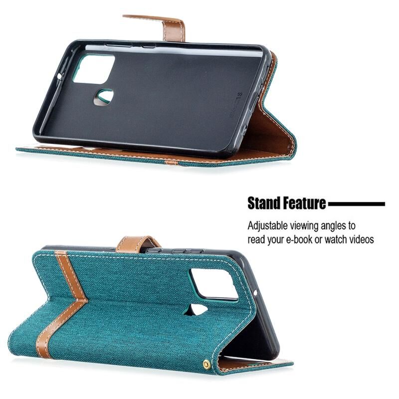 Για Samsung Galaxy A21s Matching Denim υφή οριζόντια Flip PU δέρμα υπόθεση με θήκη & υποδοχές για κάρτες & πορτοφόλι & κορδόνι (πράσινο)