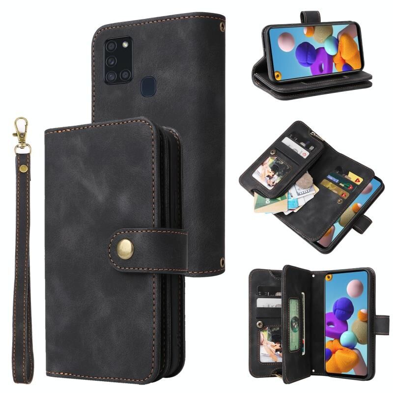 Για Samsung Galaxy A21s Πολυλειτουργική κάρτα Slot φερμουάρ πορτοφόλι δερμάτινη θήκη τηλεφώνου (μαύρο)