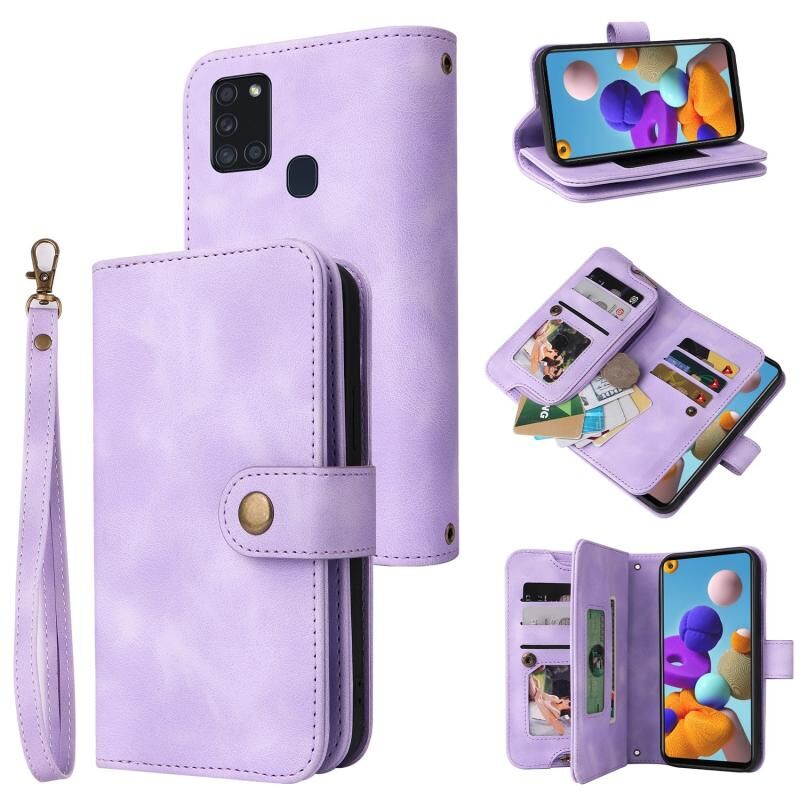 Για Samsung Galaxy A21s Πολυλειτουργική κάρτα Slot φερμουάρ πορτοφόλι δερμάτινη θήκη τηλεφώνου (μωβ)