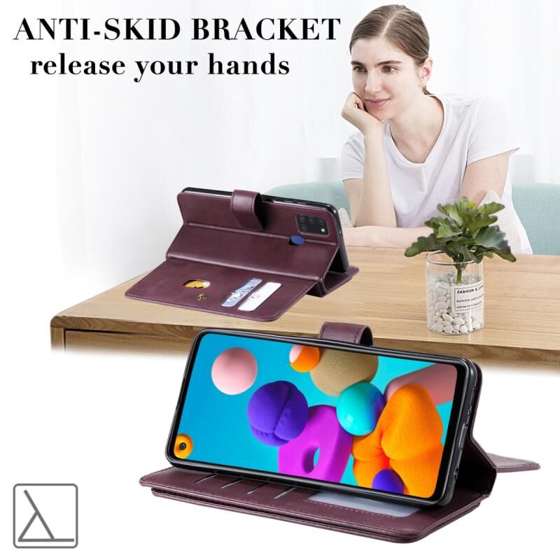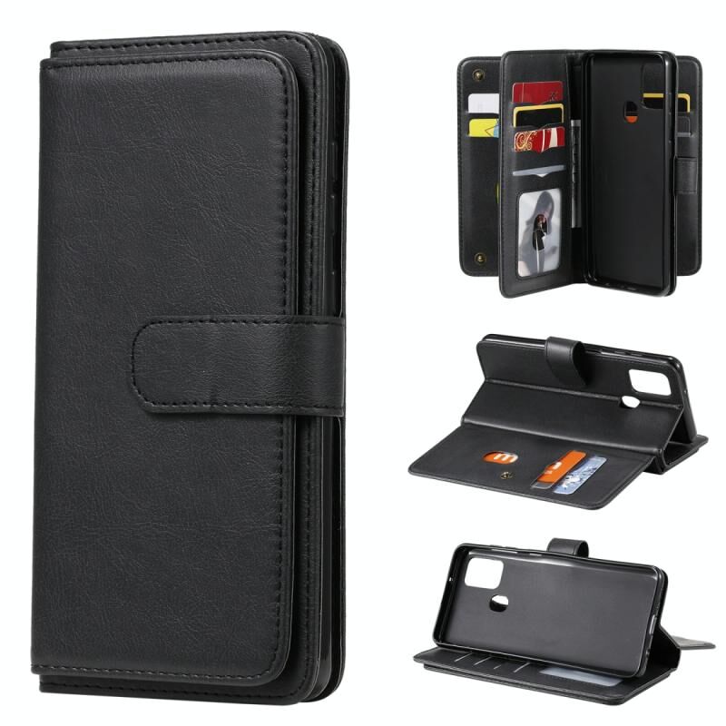Για Samsung Galaxy A21s Πολυλειτουργική μαγνητική χάλκινη πόρπη οριζόντια Flip αμιγές χρώμα δερμάτινη θήκη με 10 υποδοχές για κάρτες & πορτοφόλι & θήκη & κορνίζα φωτογραφιών (μαύρο)