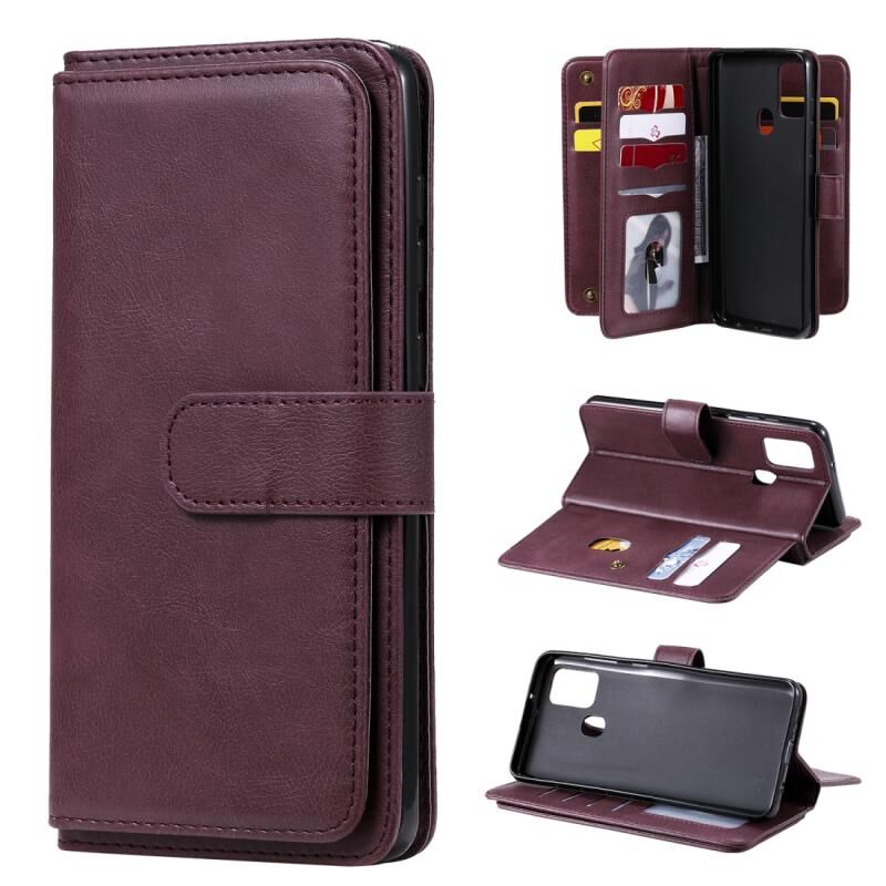 Θήκη Samsung Galaxy A21s Πολυλειτουργική Μαγνητική Θήκη με Αγκράφα από Χαλκό, Οριζόντια, Μονόχρωμη Δερμάτινη με 10 Θήκες Καρτών & Πορτοφόλι & Στήριξη & Κορνίζα Φωτογραφιών (Κρασοκόκκινο)