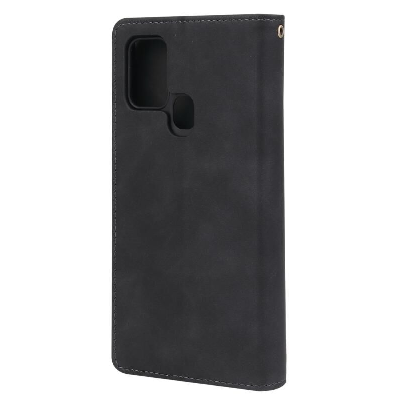 Για Samsung Galaxy A21s Πολυλειτουργική Retro Frosted Οριζόντια Flip δερμάτινη θήκη με υποδοχή κάρτας & κάτοχος & φερμουάρ πορτοφόλι & κορνίζα φωτογραφιών & κορδόνι (Μαύρο)