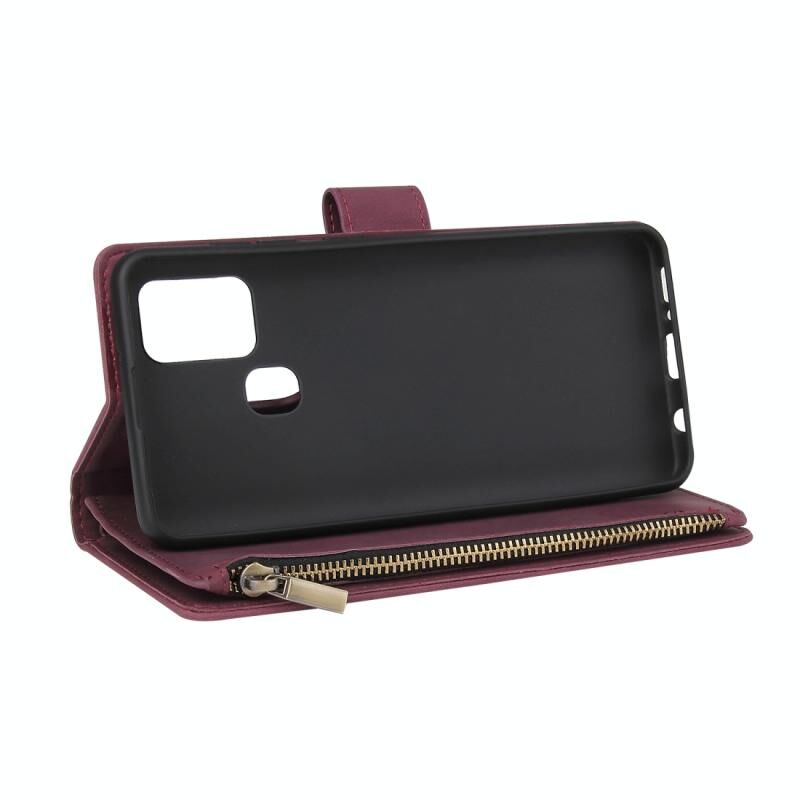 Για Samsung Galaxy A21s Πολυλειτουργική Retro Frosted Οριζόντια Flip δερμάτινη θήκη με υποδοχή κάρτας & κάτοχος & φερμουάρ πορτοφόλι & κορνίζα φωτογραφιών & κορδόνι (κόκκινο κρασί)