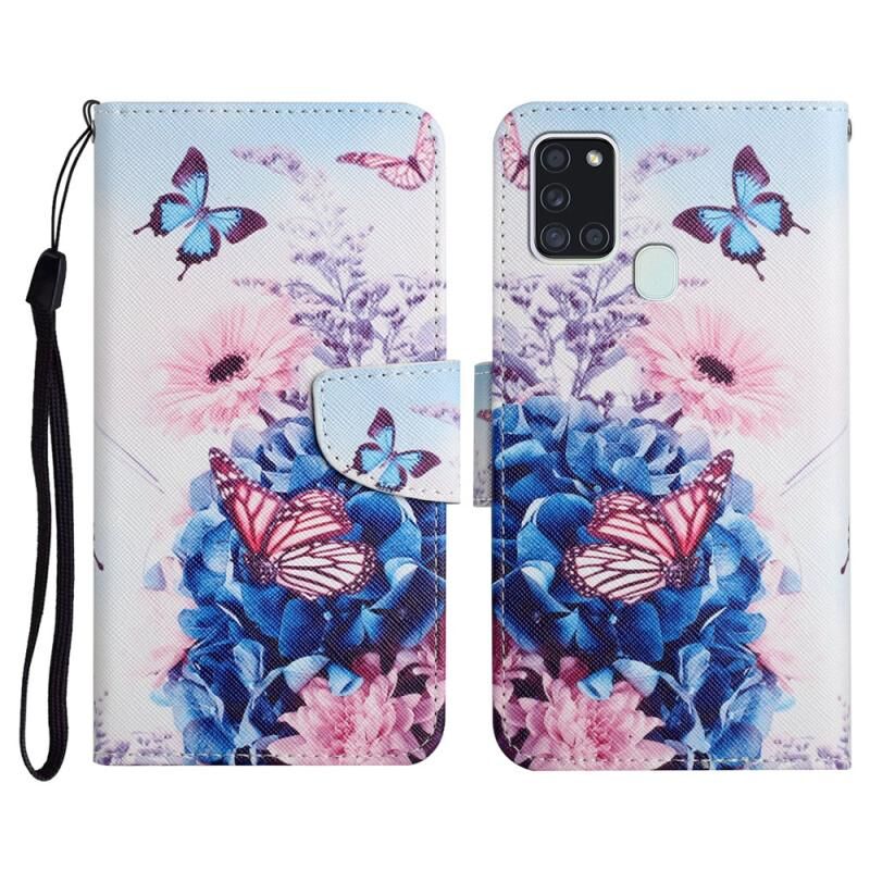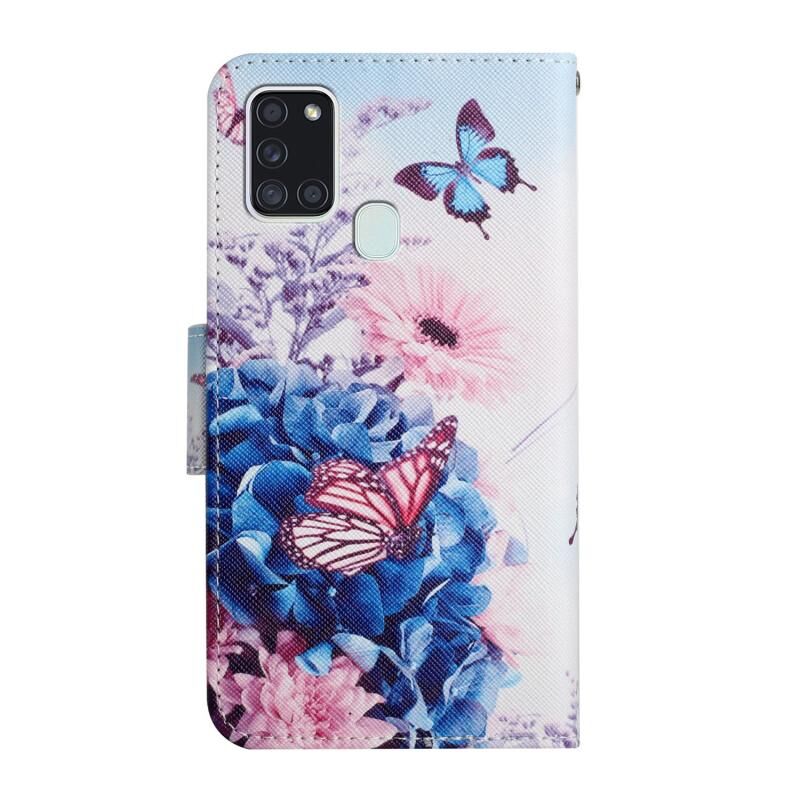 Θήκη Samsung Galaxy A21s από Δέρμα με Οριζόντιο Άνοιγμα, Βαμμένο Μοτίβο, με Θήκη & Υποδοχή Κάρτας & Πορτοφόλι (Κόκκινο Λουλούδι)