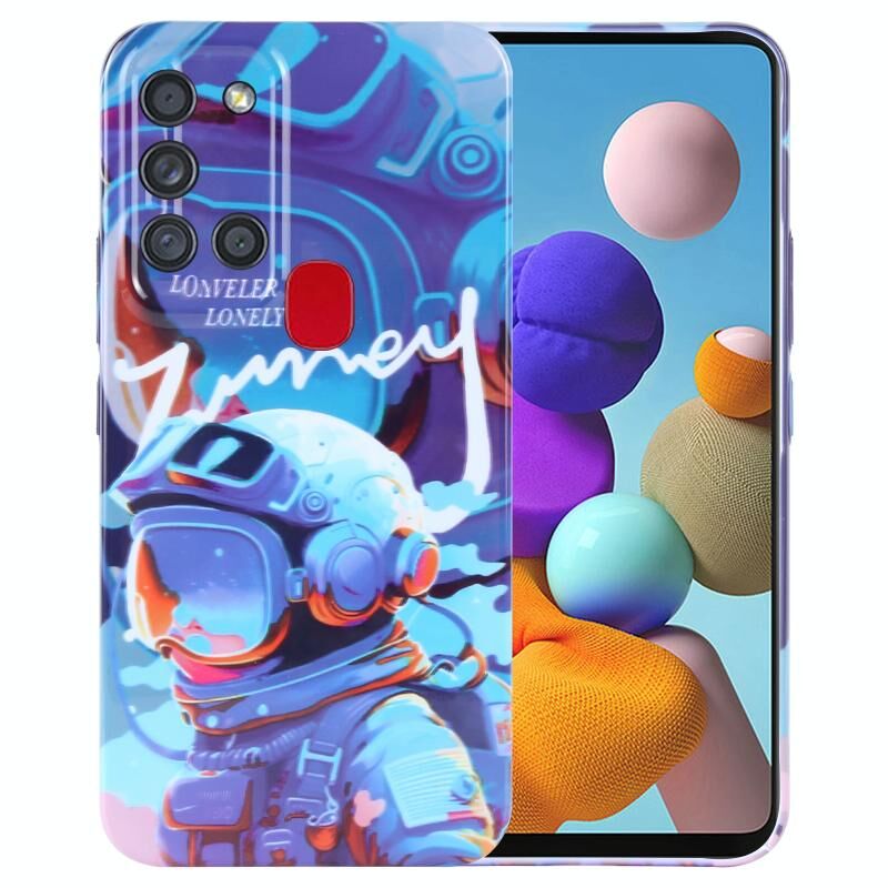 Θήκη κινητού Samsung Galaxy A21s από PC με ζωγραφιστό σχέδιο και ακριβείς οπές (Πορτοκαλί ετικέτα)